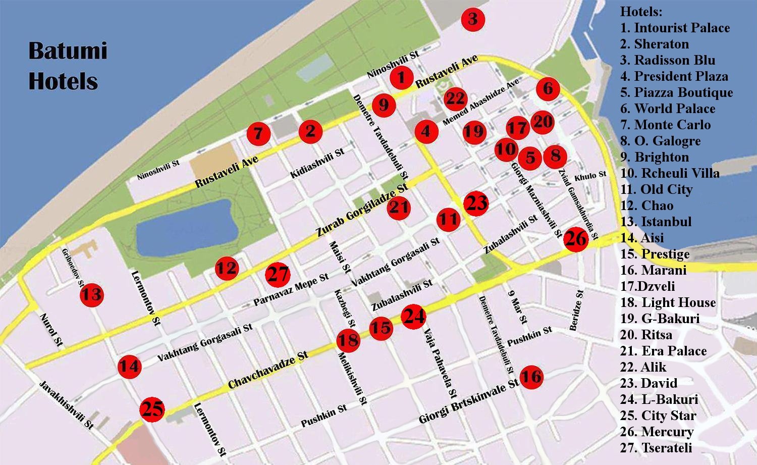 В списке популярных карт можно посмотреть карту Батуми на русском с достопримечательностями. Для скачивания карт достаточно щелкнуть мышкой по изображению.