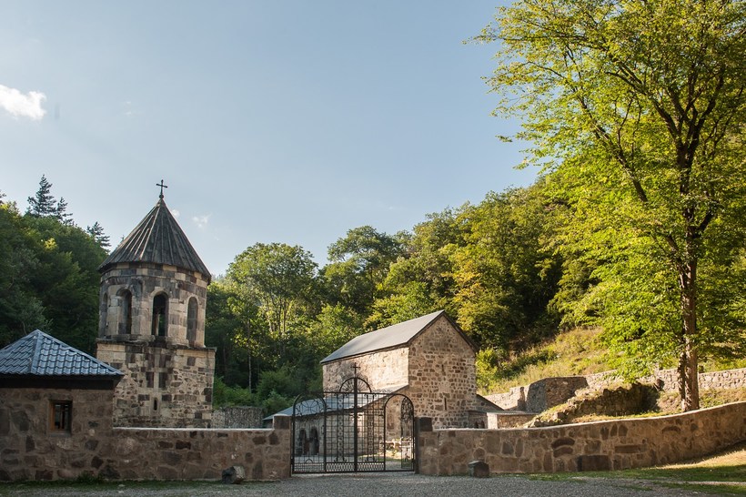 - Зеленый монастырь, расположенный в 10 километрах от Боржоми. Добраться можно пешком, автостопом или на такси. Все путешествие к монастырю может сделать дорога: она восхитительна. Когда свернете с трассы, смотрите в оба: скоро вы окажетесь на грунтовке, окруженной деревьями. Они будут нависать сверху и тянуть к вам свои ветви. Сказочное зрелище, особенно если будет зима. А если лето, то земля вокруг будет укрыта изумрудными мхами, что тоже красиво. Даже само название монастыря — «зеленый» — как бы намекает на путь к нему. Сам монастырский комплекс состоит из храма, колокольни, святого источника и памятной постройки, где хранятся черепа монахов, убитых здесь во время нашествия османов.