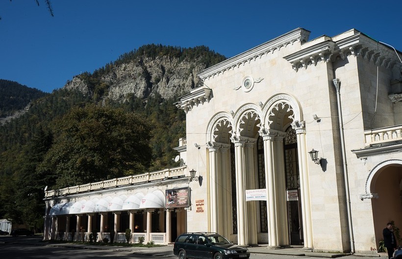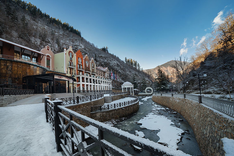 Если же вы хотите красивой жизни, то можете остановиться в отеле Rixos Borjomi. Цена за сутки проживания начинается от 105 USD/210 GEL на одного человека. Отель расположен на берегу Куры в небольшом отдалении от центра (5 км), но это того стоит.