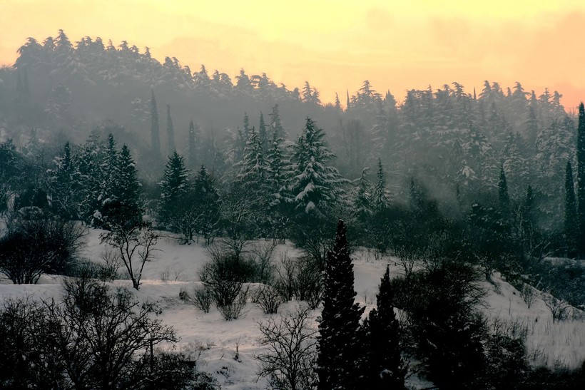 Случается, что в Боржоми наступает настоящая зима. Снег облепляет ветви деревьев, и все вокруг кажется истинной сказкой. В такие дни бывает снежно и тепло, а небольшой температурный минус в сочетании с горными пейзажами настраивает на добрую волну, когда хочется выпить вина или чего покрепче, отобедать кебабом или харчо и пойти исследовать город.