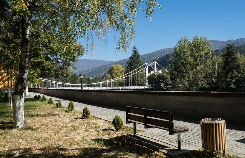 - Набережная Куры. Да, в таких небольших городах учишься радоваться малому и видеть красоту в самых простых обыденных вещах. Набережную недавно отреставрировали, и сейчас она представляет собой променад длиной в пару-тройку километров, усаженный деревьями. Повсеместно стоят лавочки, что очень удобно: летом можно взять мороженое и любоваться видом на город, тем более что под шум Куры очень хорошо мечтается. Еще на набережной Боржоми встречаются любопытные образцы советской мозаики – обратите внимание.