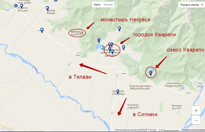 В общем, передвижение по Кахетии на маршрутках возможно в результате тесного общения с местными либо в случае удачи. Поэтому строить четкий маршрут по региону, не имея собственного транспорта, смысла нет.