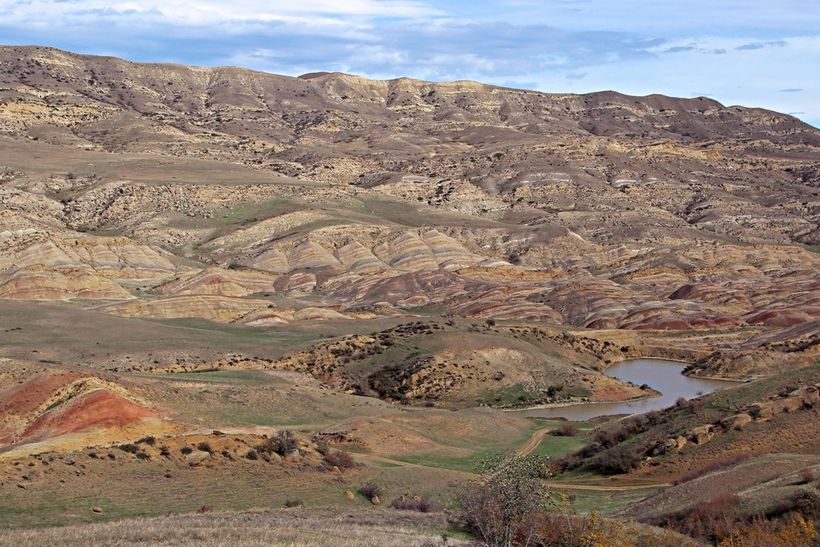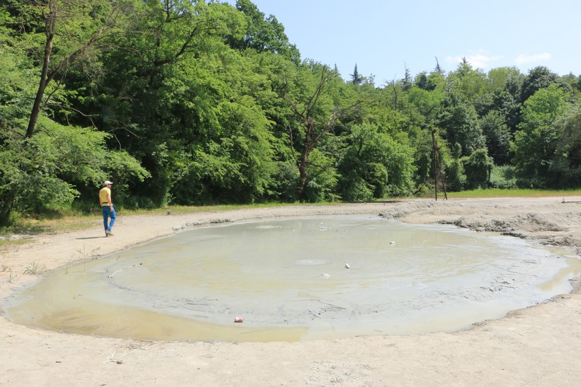 - грязевые вулканы в Ахтала (22 км от Сигнахи)После такой близости Азербайджана мне вспоминаются тамошние грязевые вулканы рядом с Баку, но, оказывается, в славной маленькой Грузии они тоже есть! Если вы любите необычные природные явления — вам сюда, в Ахталу.Этот курорт расположен неподалеку от города Гурджаани, в Алазанской долине, и считается настоящей грязевой здравницей страны. Официально все это добро называется «сопочная леченая грязь». Сейчас функционирует около 4 вулканов, которые выглядят, скорее, как непонятные лужи.