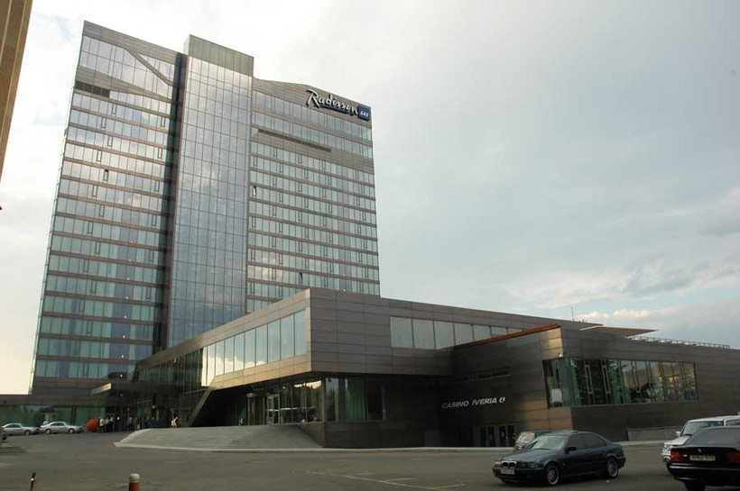 - на площади Революции Роз, 1, в многоэтажном отеле Radisson Blu Iveria Hotel (вы точно не пройдете мимо него),
