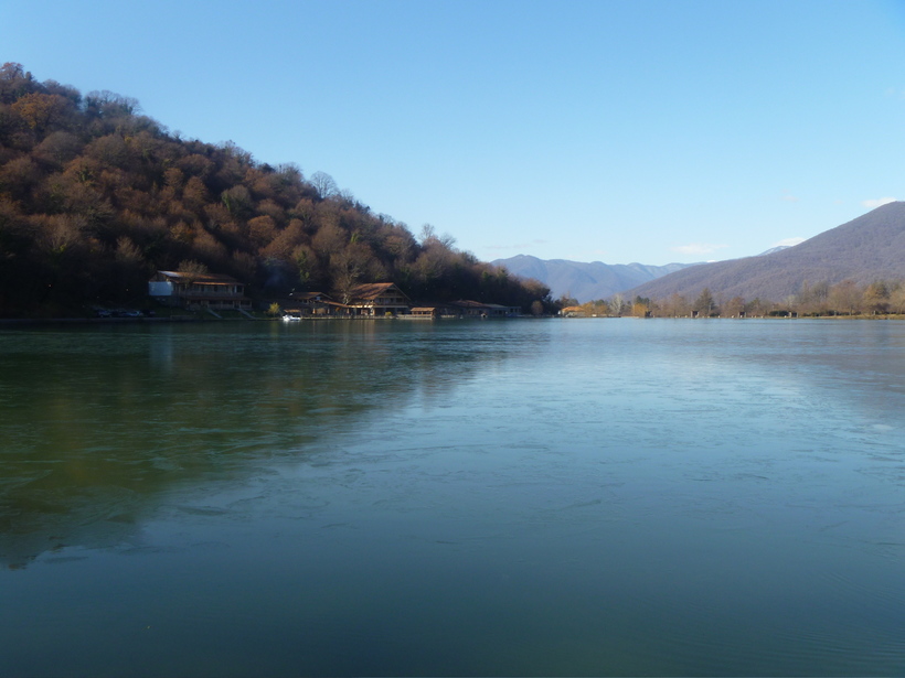 - озеро КварелиСкажу банальность, но это озеро — жемчужина Кахетии. Есть еще озеро Лопота, оно тоже чудо как хорошо, но я расскажу про первое. Только представьте: провести недельку на берегу чистейшего пресного озера глубиной 20 метров на высоте 500 метров над уровнем моря.