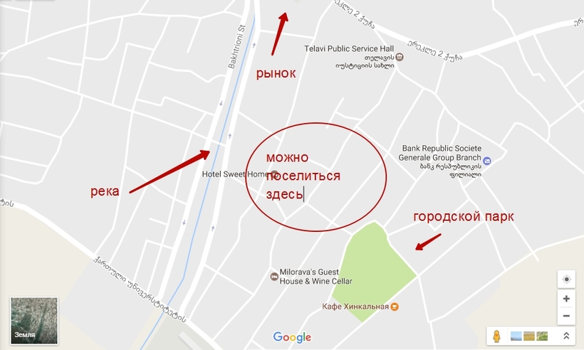 Однако, в целом, жилье в Телави дешевле, чем в Сигнахи, поэтому, если вы ищете способы, как сэкономить в Грузии, стоит рассмотреть вариант проживания здесь. Тем более что в Телави есть и небольшие уютные отели, и крупные гостиницы, и самый популярный вариант проживания в Грузии —гостевые дома. Телави — совсем небольшой город и, где бы вы ни поселились, вы окажетесь в центре. Но есть наиболее симпатичные районы. Например, неподалеку от Городского парка. Советую селиться в кварталах между ним и улицей Бахтриони: близость реки и парка будут нести приятную прохладу летом.