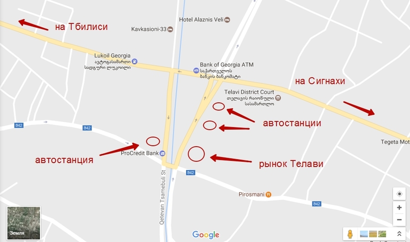 В обоих кахетинских городах маршрутки из Тбилиси прибывают на центральные автостанции: и Сигнахи (в нем вообще всего одна автостанция), и Телави слишком малы, чтобы в них можно было запутаться.