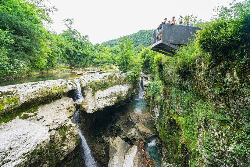 ПОЛЕЗНО! Не доезжая 1 км до Мартвильских каньонов, есть водопад, в котором можно купаться бесплатно. В google maps подписан Abhesi Waterfall. Точные координаты — 42.453330, 42.375650.