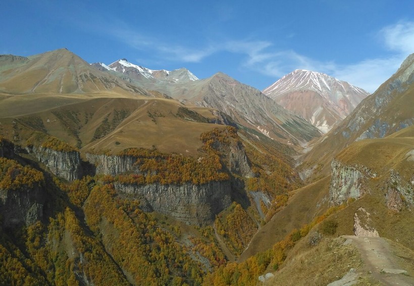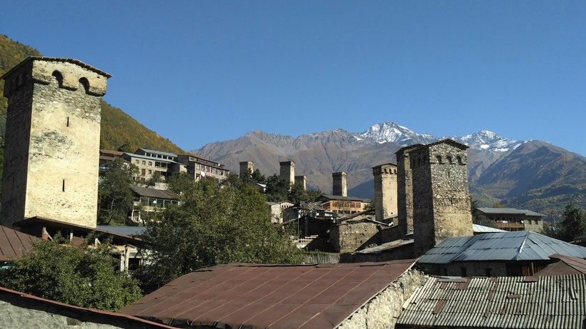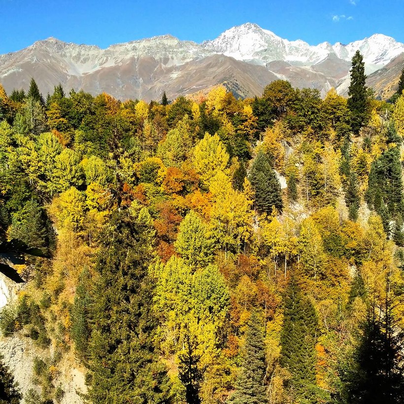 Для меня, осень — лучшее время для путешествий по горам Сванетии. В Местии не слишком людно, погода тёплая, горы играют невероятными красками, на рынке полно овощей и фруктов. Температура около 12 °С — средняя по всей осени, дожди бывают редко. В сентябре — бархатный сезон, в октябре — яркие листья, в ноябре уже прохладно и может выпасть снег.