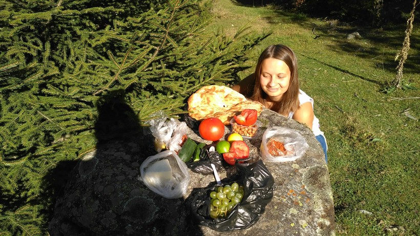 Я рекомендую купить помидоры, виноград, сыр и сванскую соль на рынке, горячий круглый сванский хлеб и запивать всё это бутылочкой грузинского вина, сидя на склоне горы и глядя на Сванские башни. В целом, лучше есть в Местии домашнюю пищу в гостевых домах, мне эти блюда показались вкуснее и душевнее ресторанных. Ещё в Местии почти нигде не готовят хинкали, ну, как-то не принято, не знаю, почему.