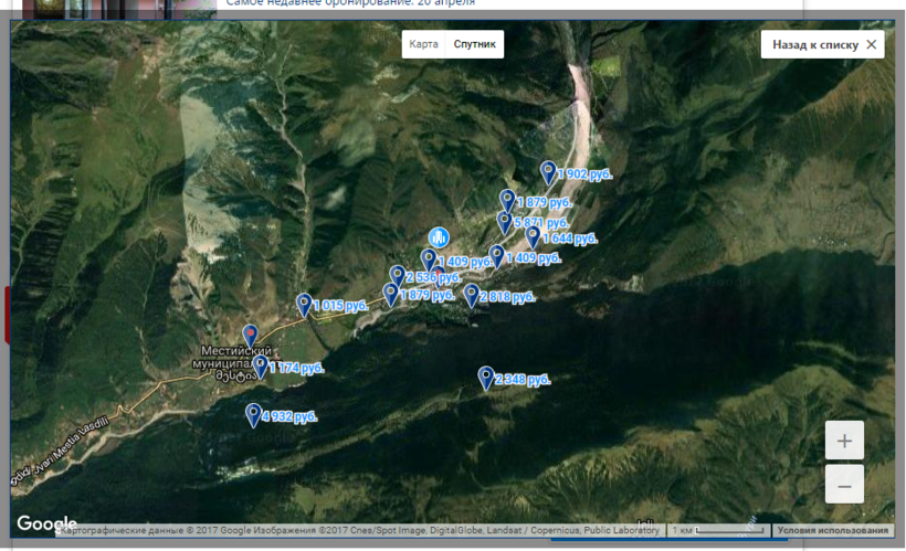 Местийский муниципалитет, обозначенный на карте, расположен ближе к выезду из города, центральная площадь – в пяти минутах от него, а до конца улицы можно дойти минут за 20.