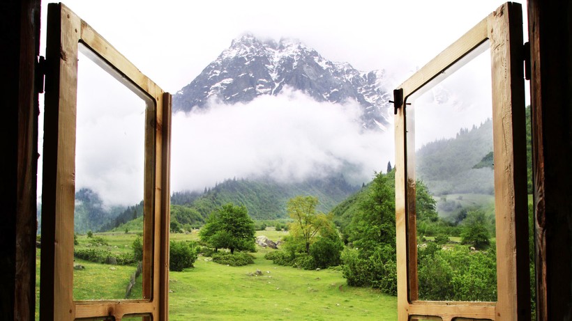 Это вид из окна туалета и ванной. Всё это на высоте 1500 метров над морем, представьте себе.