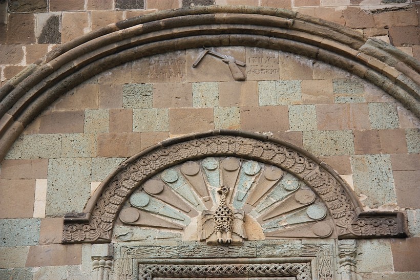 Иван Грозный, как мы помним, ослепил зодчих храма Василия Блаженного в Москве, чтобы они не смогли повторить подобного чуда где-то еще. Грузинский царь — заказчик Светицховели — недалеко ушел. И после того как зодчий Арсукисдзе воздвиг свое творение, царь приказал отрубить архитектору руку во избежание конкуренции. И если вы внимательно посмотрите на фасад храма, то увидите рельеф с изображением руки, держащей угольник. Надпись под рельефом гласит: «Рука раба Божьего Арсукидзе. Помяните».