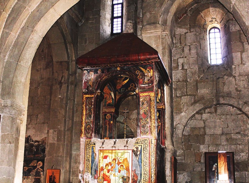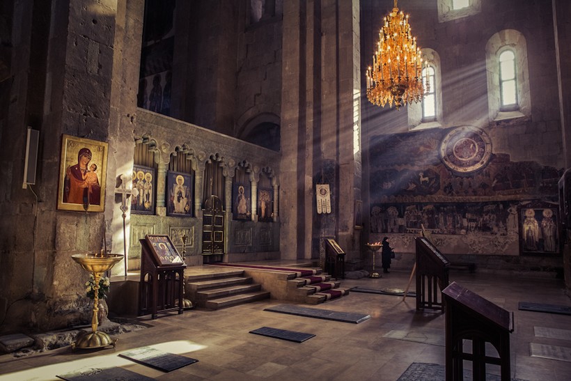 Так вот, собор Светицховели — до недавнего времени главный собор Грузинской православной церкви — был построен в XI веке на месте другой небольшой церкви Двенадцати Апостолов IV века.