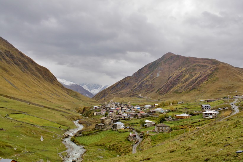 - село Ушгули, самое высокогорное постоянное поселение Европы. Пара часов езды из Местии на маршрутке: цена за всю машину, куда помещается около 20 человек, фиксированная – 100 USD. Поначалу мне показалось это слишком дорогим удовольствием, но потом, когда я увидела эту дорогу, мнение мое изменилось. Во-первых, путь очень красивый, особенно осенью, когда горы приобретают невозможные оттенки, а внизу шумит сильная река Ингури. Во-вторых, дорога очень сложная для водителя (вот туда точно не стоит соваться на собственной машине) и зачастую опасная. В пропасть вы, конечно, скорее всего, не упадете, но от некоторых особенно узких мест, будет захватывать дух. Впрочем, сваны привыкли к горным серпантинам, поэтому смотрите в окно и наслаждайтесь. Поселение Ушгули состоит из нескольких деревень. Лучше всего отправиться на прогулку в одиночестве или небольшой компанией: так вы прочувствуете атмосферу и быт этих мест. У меня было стойкое ощущение, что я оказалась в Средневековье. Грязь по щиколотку, огромные лохматые собаки, каменные дома и башни, звенящая тишина окружающих гор… Если повезет, увидите высочайшую гору Грузии – Шхару. Она на 160 метров выше более привычного нам Казбека.