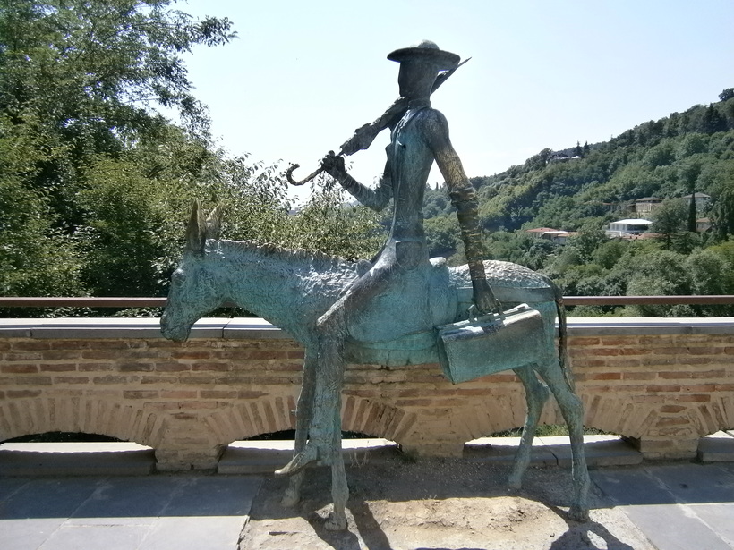 - 10:00 — Парадные ворота Сигнахи — улица Бараташвили. По ней спускаемся к площади Ираклия II. По дороге любуемся скульптурой Доктора и фотографируемся на фоне города.