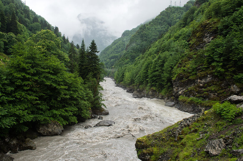 спуститься к берегу реки Ингури и прочувствовать мощь природы;