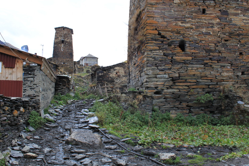 Если описать увиденное там одним словом... Нет, это не получится сделать. Потому что столица Верхней Сванетии, городок Местиа, очень современный, хоть и затерянный в вечерних туманах. А Ушгули больше похож на средневековый поселок. Я бродила среди каменных сванских башен, утопала по щиколотку в грязи и робко уступала дорогу гигантским овчаркам и свиньям.