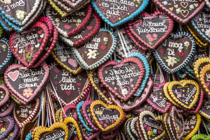 популярные в Баварии пряники, кстати, можно приобрести и на любом национальном празднике. Они не очень вкусные, их покупают в основном для красоты и традиционно вешают на шею любимому или любимой.Как правило, на них написаны пожелания или признания в любви на немецком, баварском или франконском диалектах.