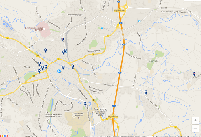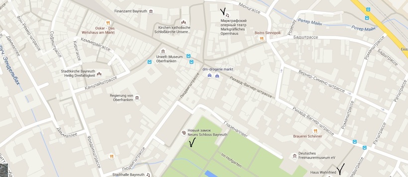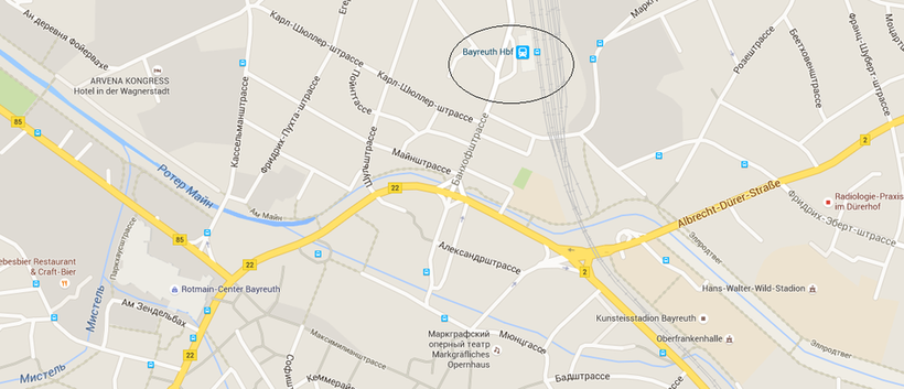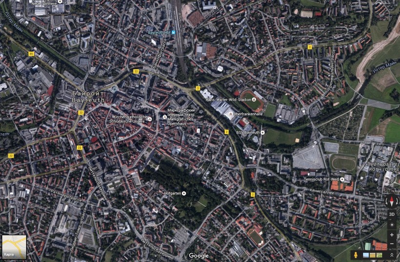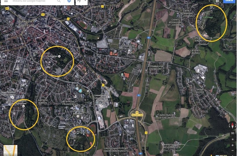 До некоторых вы можете добраться на местном автобусе или такси от железнодорожного вокзала (остановка Bayreuth Hbf). О всех тонкостях перемещения по городу я расскажу чуть позже.