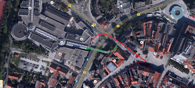 - Bahnhofstr. переходит в Bürgerreuterstr.,