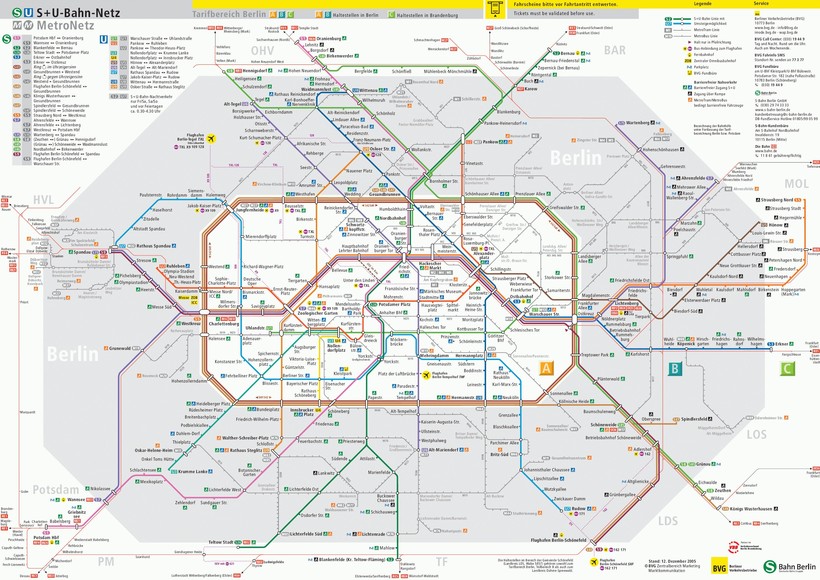 Хотя, пожалуй, всё же стоит определиться с зонами. Вся сеть делится на три зоны: A,B и С. Чаще всего вы будете перемещаться в зоне AB. А зона C, к примеру, может понадобиться, если вы едете в аэропорт Schonefeld или отправились погулять в Potsdam.