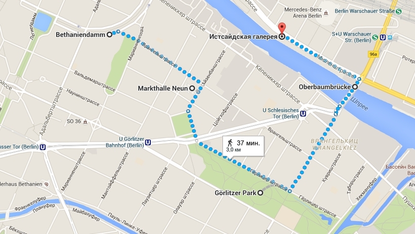 Так, Марктхалле 9 лежит на пути знакомства с Кройцбергом от Bethaniendamm до Oberbaumbrücke в сторону East Side Gallery и многочисленными барами в любой день недели до утра.