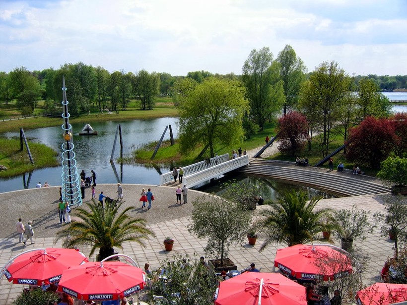Помимо этого в парке есть несколько чайных двориков, парочка блошиных рынков и большой пивной ресторан. Кстати, мне очень понравились рогалики с пармезаном и облепиховый чай, который подают в летней террасе пивного гастрономического заведения. Цены в ресторане парка такие же, как и в городских заведениях, поэтому за легкий перекус придется заплатить примерно 10-16 EUR.
