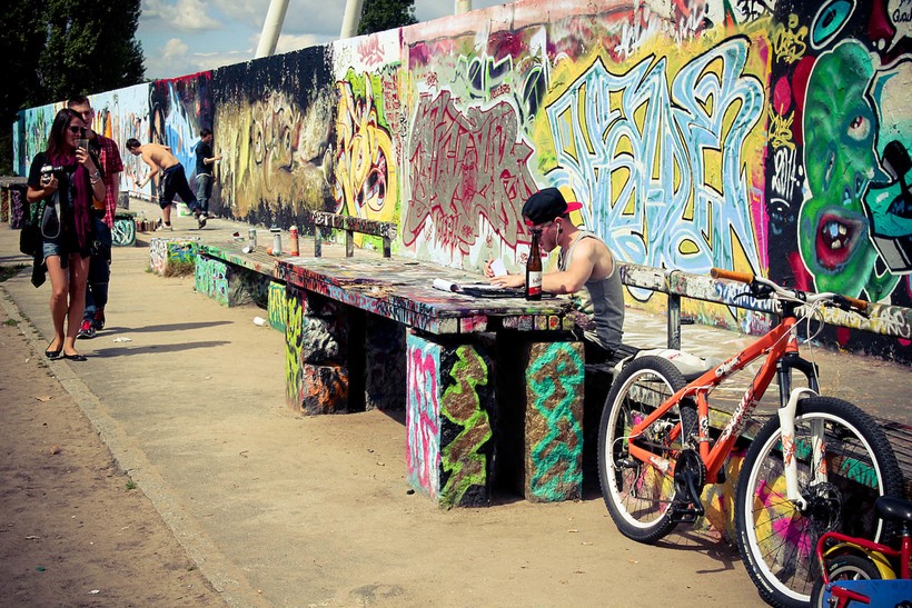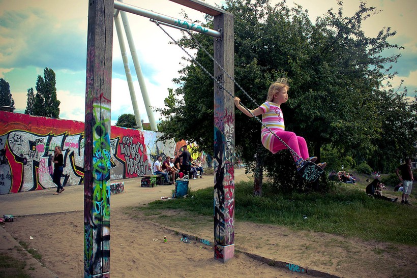 После того, как Берлинская стена пала, это место стало зеленой зоной, на которой и вырос «Мауэрпарк». Сегодня для молодого поколения это место считается одним из самых лучших, где можно провести свой вечер или выходные. Тут есть скейтплощадка и небольшой парк с каруселями. А еще для меня большой неожиданностью стали уличные музыканты, фокусники и другие люди, которые зарабатывают себе на жизнь подобным образом. К слову, ни в одном другом парке Берлина такого количества уличных клоунов, иллюзионистов и музыкантов я не встречала.