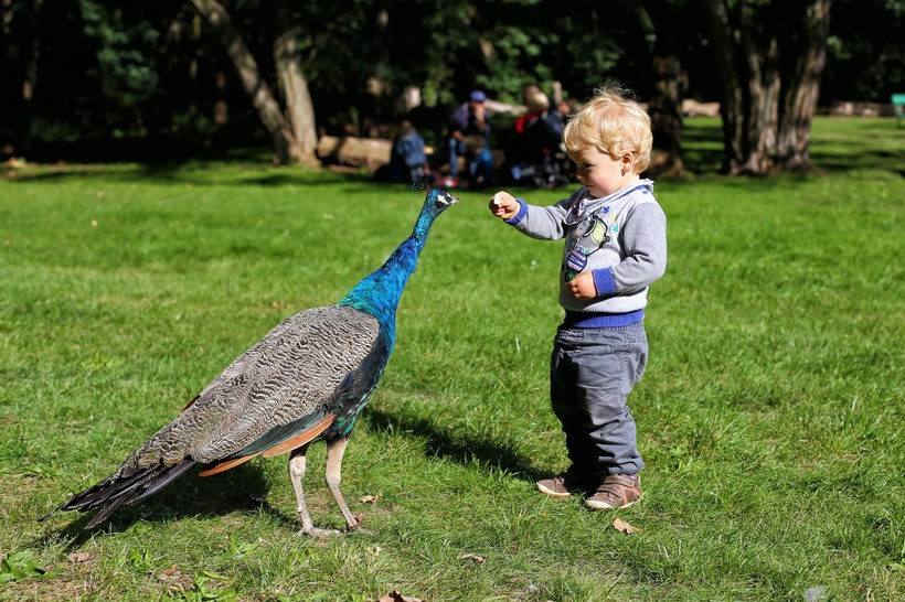 Вся строгость и излишний, как мне кажется, контроль объясняется тем, что это исключительно природная достопримечательность. К слову, на территории «Павлиньего острова» расположены вольеры с экзотическими птицами. Павлины в этом месте тоже есть, правда, они, как настоящие хозяева, чувствуют свое превосходство и вальяжно гуляют на территории всего парка, без ограничений. Действительно возникает какое-то волшебное и невероятно теплое чувство, когда на одну тропинку с тобой выходит такая красивая и гордая птица. В глаза бросается то, что павлины совершенно не боялся людей и даже если за ними пристально наблюдать, то они совершенно не будут смущены. При этом, на удивление, трогать и подкармливать птиц можно :).