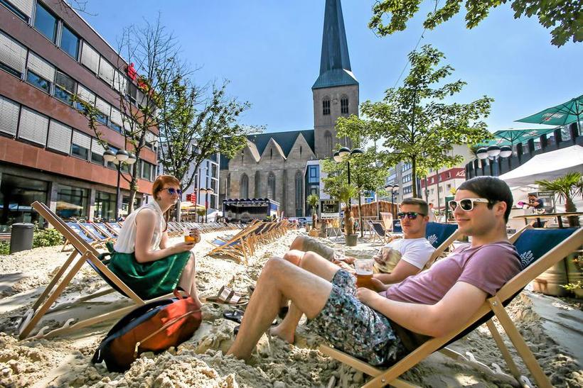 В Дортмунде, конечно, нет речки и моря, но есть пляж! Расположен он на станции UBahn Kampstrasse. Власти города распорядились устроить в центре Дортмунда настоящий пляж с песком и шезлонгами, чтобы жители смогли принимать солнечные ванны.