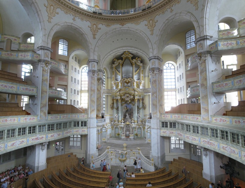 Великолепный лютеранский храм (сам Август Сильный ради власти принял католичество) строили с 1726 по 1743 годы. В результате в Дрездене появилась церковь Богоматери в 95 метров высотой, с огромным куполом и пышным внутренним убранством — храм, в котором одновременно могли молиться 3 500 прихожан!