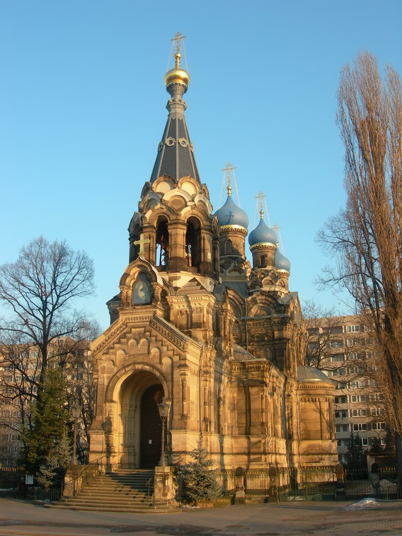 А вот об этом храме я расскажу с особым удовольствием — как не потешить свою русскую душу? Церковь святого преподобного Симеона Дивногорца по-немецки называется так: Russisch-Orthodoxe Kirche des Heiligen Simeon vom wunderbaren Berge. Не знаю как вас, друзья, а меня охватывает чувство родства при мысли о том, что в городе, который когда-то по-славянски назывался Дрежда, есть православный храм.