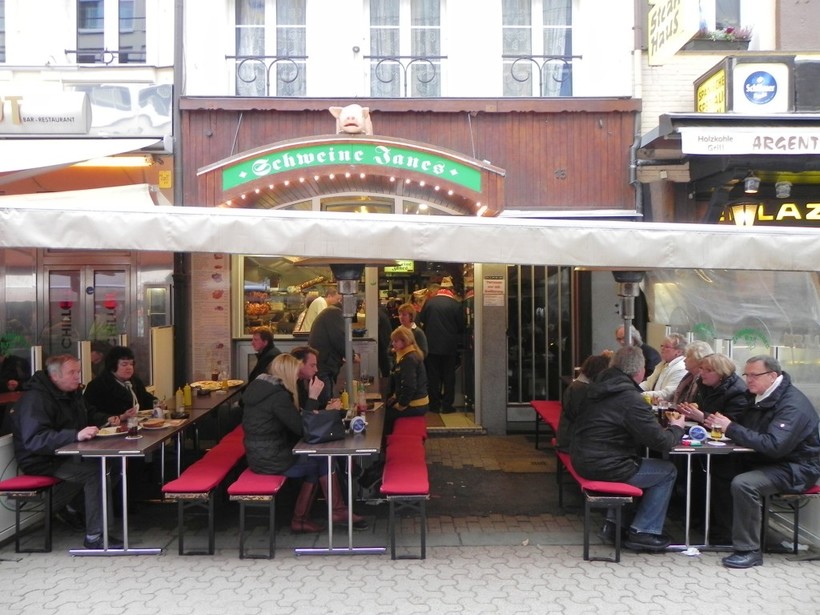 Schweine Janes, Bolkerstrasse 13, — вкусные рульки, шикарная капуста, картофельное пюре, пиво, много посетителей, в том числе и русскоязычных. Мы посещали это место по рекомендации, 30 EUR на двоих;