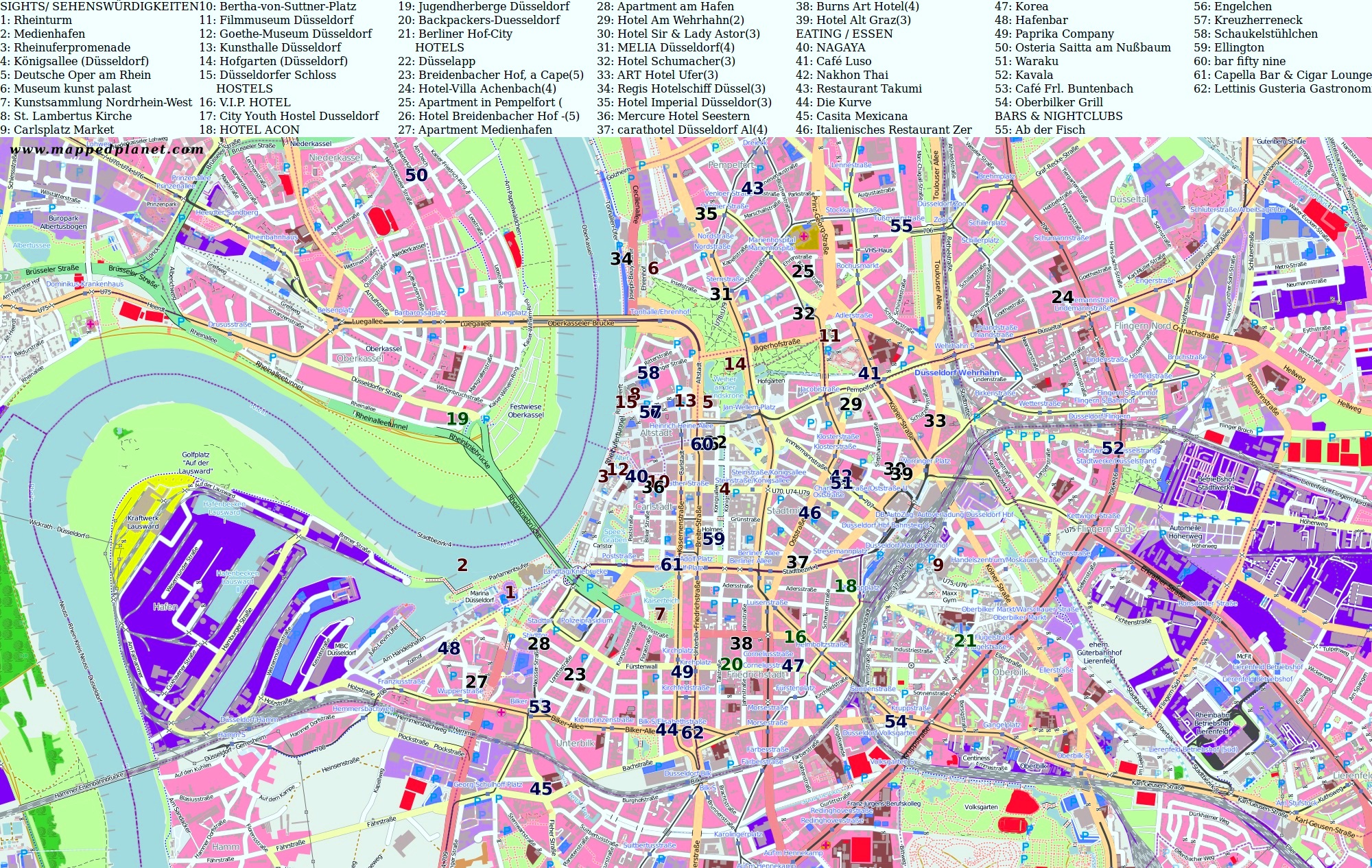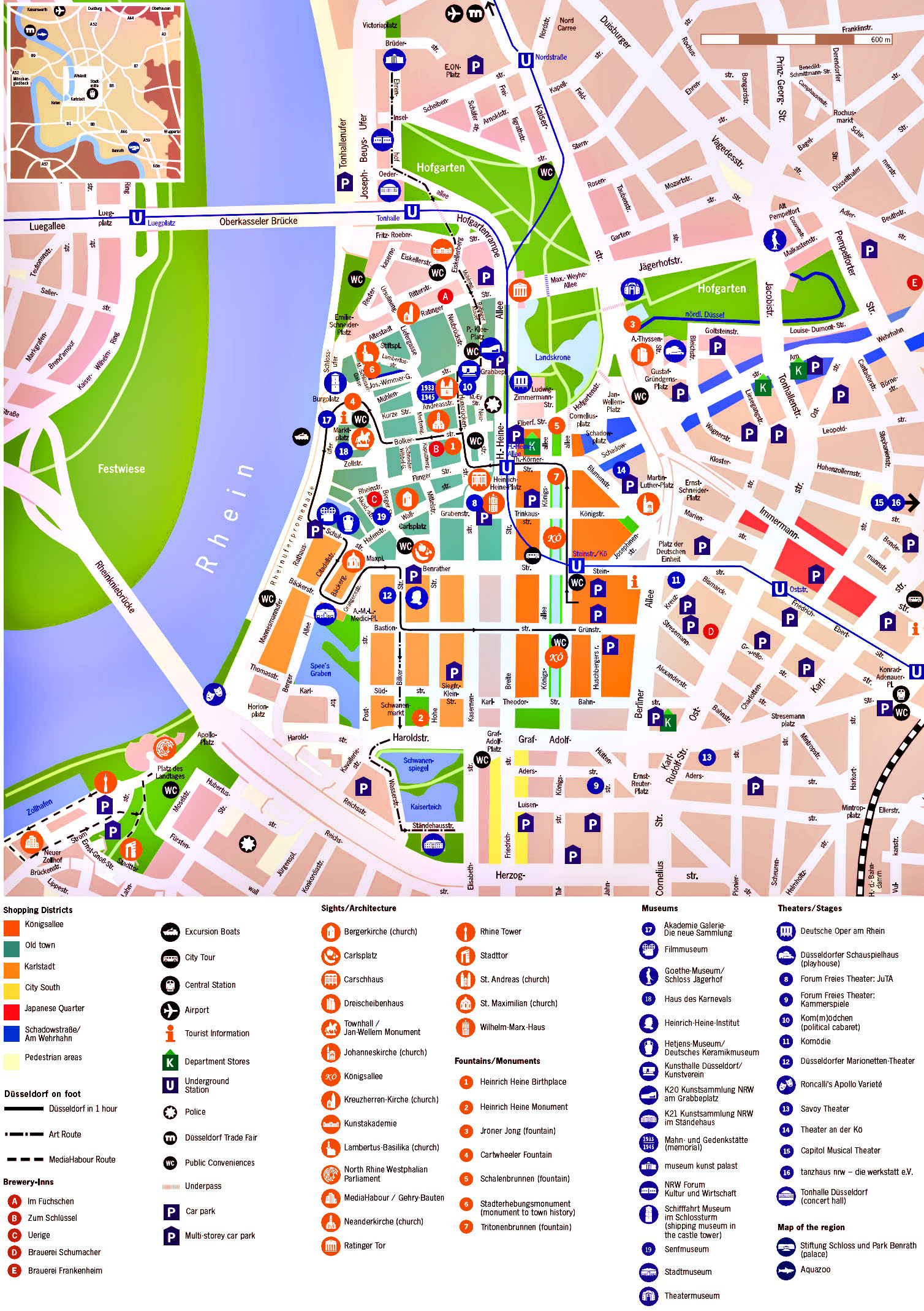В списке популярных карт можно посмотреть карту Дюссельдорфа на русском с достопримечательностями. Для скачивания карт достаточно щелкнуть мышкой по изображению.