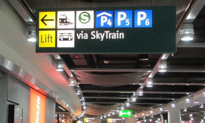 Пожалуй, первым впечатлением, которое будет ожидать вас на Рейнской земле, станет дорога из терминала к вокзалу аэропорта. Выйдя из ворот ищите на указателях значок via SkyTrain – это подвесные вагончики, которые доставят вас на вокзал.
