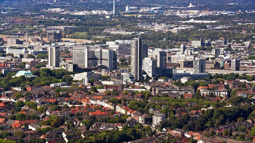 - Красива, хоть и не уникальна, скайлайн Эссена. Она расположилась по другую сторону от главного вокзала и к ней можно выйти через его южный вход (Südeingang).