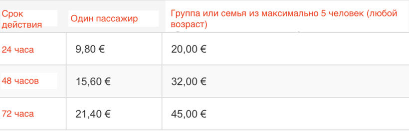 Проезд в автобусах, как и на общественном транспорте в целом, стоит сравнительно дорого: 2,70 EUR за поездку (более 180 рублей). Это связано с тем, что местные в основном предпочитают передвигаться на машине. Но за эти деньги вы получаете совершенно другой уровень сервиса и комфорта.