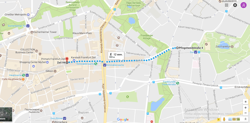 Франкфурт, как и другие города Германии поделен на тарифные зоны. То есть если ты ездишь на общественном транспорте в пределе одной зоны, то стоимость билета будет фиксированной, а вот если ты пересекаешь тарифные зоны и из одной направляешься в другую, то стоимость билета будет выше.