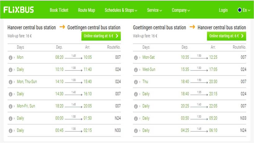 - Из Ганновера до Геттингена на автобусе можно добраться примерно за полтора часа. По времени это выходит так же, как и на медленных поездах, но по цене обойдется всего 6 EUR.