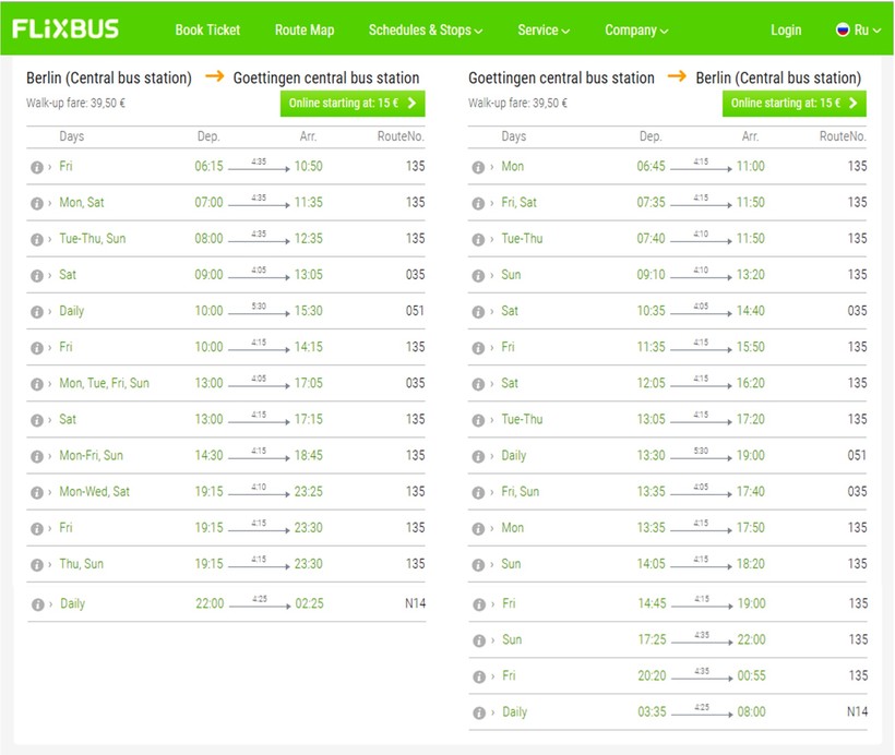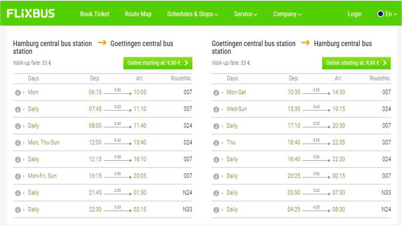 Еще одним преимуществом данной компании является наличие постоянного интернета в автобусе во время дороги. Вы без проблем сможете проверить почту или посидеть в социальных сетях. Дорога из Берлина до Геттингена займет четыре часа на прямом автобусе и будет стоить от 15 EUR. Можно, конечно, поехать с пересадкой в Гамбурге, но такой вариант и дольше, и дороже.