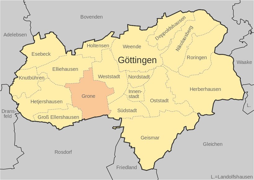 Весь город поделен на три основных района: Хольтензен Берг (Holtenser Berg), Гроне (Grone) и Гайсмар (Geismar).