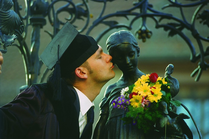 Если вы увидели огромную толпу студентов на главной площади, которые пьют, кричат, и гуляют, скорее всего это — празднование защиты дипломов. В Геттингене есть традиция, согласно которой каждый защитившийся PhD студент должен вскарабкаться на памятник Лизы Гусятницы (Gänseliesel), поцеловать ее и оставить свой букет.