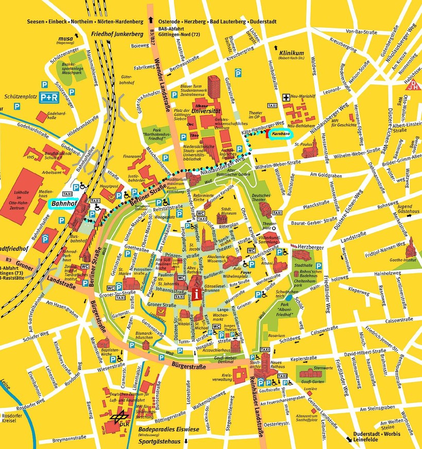 Если вы собрались провести весь день в городе, то начать можно в 9:00 из центра, автобусная остановка Weender Straße-West или Weender Straße-Ost (смотря на какой стороне вы находитесь).