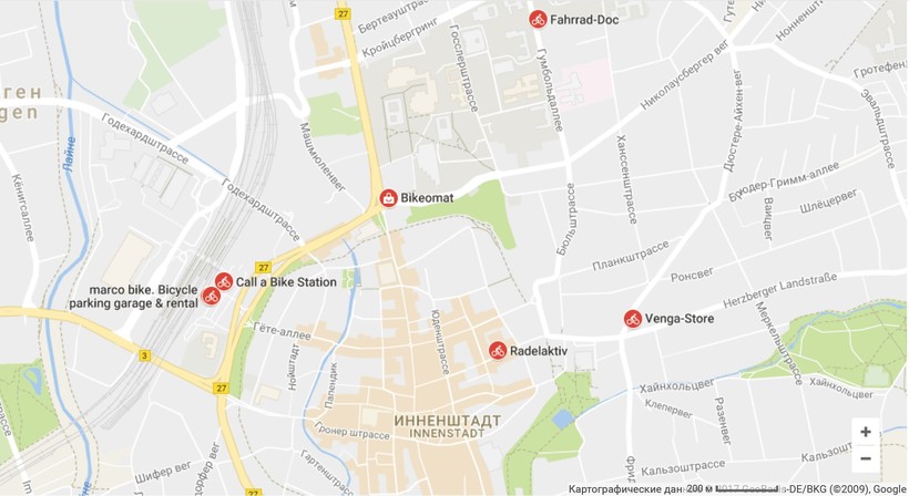 Прямо на центральном вокзале и еще в нескольких местах по городу можно арендовать велосипед. Если воспользоваться компанией DB Call a bike, то байк будет стоить 15 EUR в сутки либо по 1 EUR за каждые 30 минут.