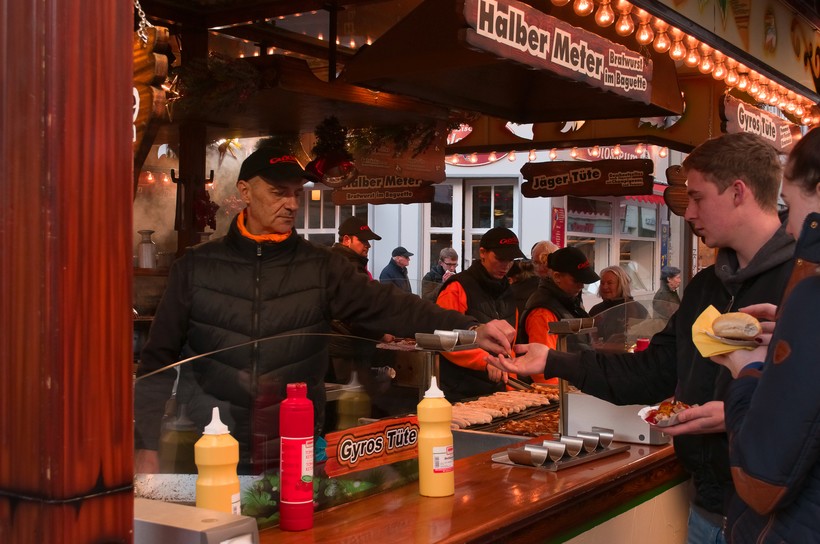 Во время гуляний также привозят мини-рестораны на колесах, где продают блины, полуметровые сосиски и фламмкухены (Flammkuchen, что-то наподобие пиццы, но с зажаренным салом и луком).