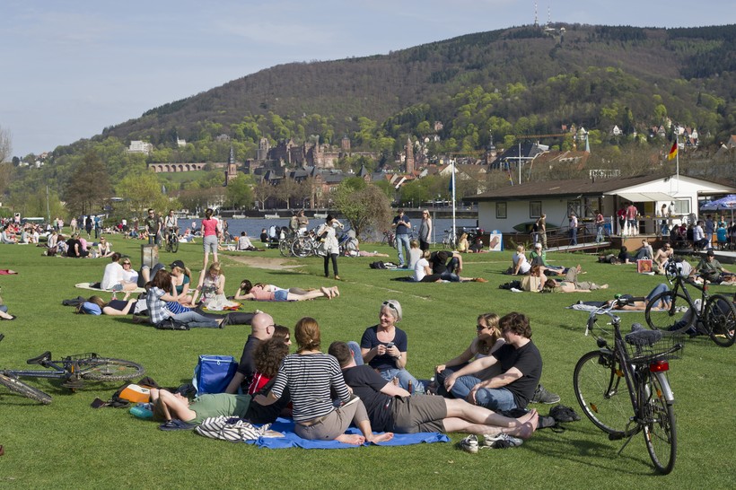Основное место отдыха горожан – это Некравизе (Neckarwiese), большая зеленая зона у реки. Студенты здесь жарят барбекю, играют на гитаре и просто валяются на лужайках. Здесь царит неповторимая атмосфера умиротворения и раскованности. Я бы сказала, что это одно из самых знаковых мест Гейдельберга. Но, учтите, в хорошую погоду здесь всегда очень много людей.