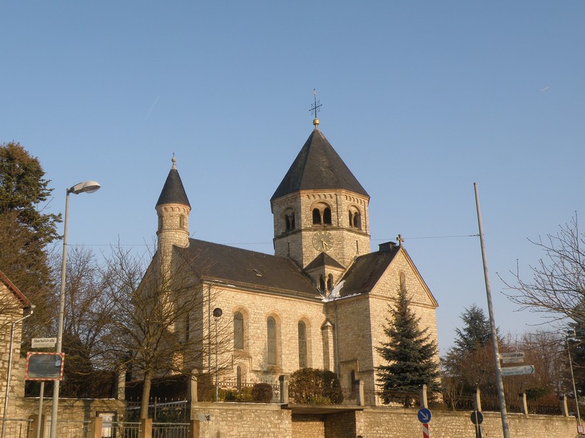 - Зельцтальдом (Selztaldom). Евангелистская церковь в неороманском стиле, более известна как Зельцтальдом (Selztal – так называется район, в котором она стоит, Dom – из-за массивного размера) была построена в 1988 году архитектором Фрайхер Хайнрих (Freiherr Heinrich). Спонсором строительства выступила в то время очень богатая семья Герхард (Gerhardt), которые были и упокоены рядом с Домом. Церковь поражает своим внутренним убранством: яркие огромные витражи, помпезный свод, а у входа вас встречает массивная дверь, над которой изображен ягненок с книгой «за семью замками». Адрес: Schwabenheimerstraße 26, 55218 Ingelheimю Официальный сайт тут.