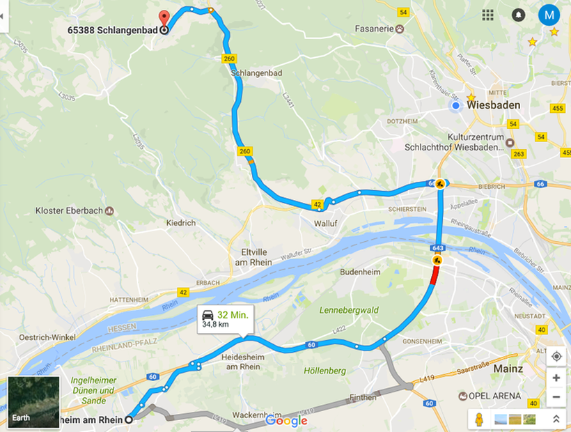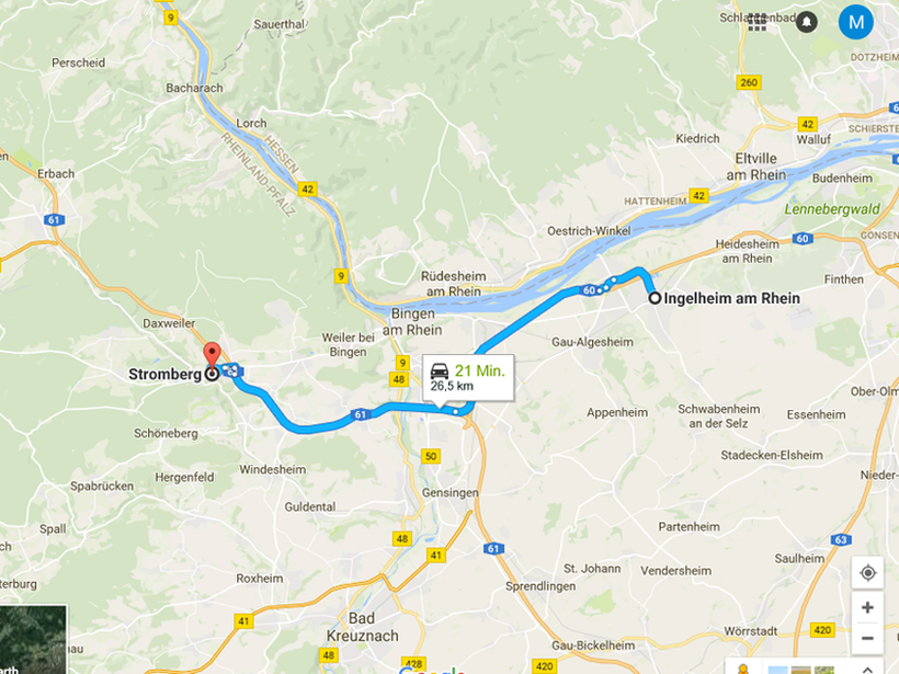 Прямых рейсов (я имею в виду самолет, поезд, автобус) до города, к сожалению, нет. Однако до Ингельхайма добраться не составит труда. Так что отложим вариант «на санях с собаками в упряжке».
