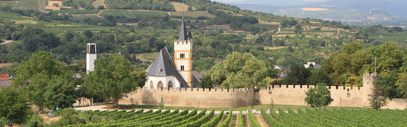 - Церковь при замке (Burgkirche Ingelheim am Rhein, ehem. St. Wigbert). Очень таинственное строение: начиная от места, на котором оно стоит, и заканчивая прекрасным состоянием, в котором здание сохранилось до наших дней. Например, внутренний интерьер, датируемый 15 столетием, дошел практически в нетронутом виде. Старейшая часть церкви – башня – выполненная в романском стиле (1103 г). Рядом находится кладбище, по которому можно побродить ибо надгробия также представляют историческую ценность.Церковь является евангелической, в которой по воскресеньям с 10:00 до 11:00) проводится летургия.